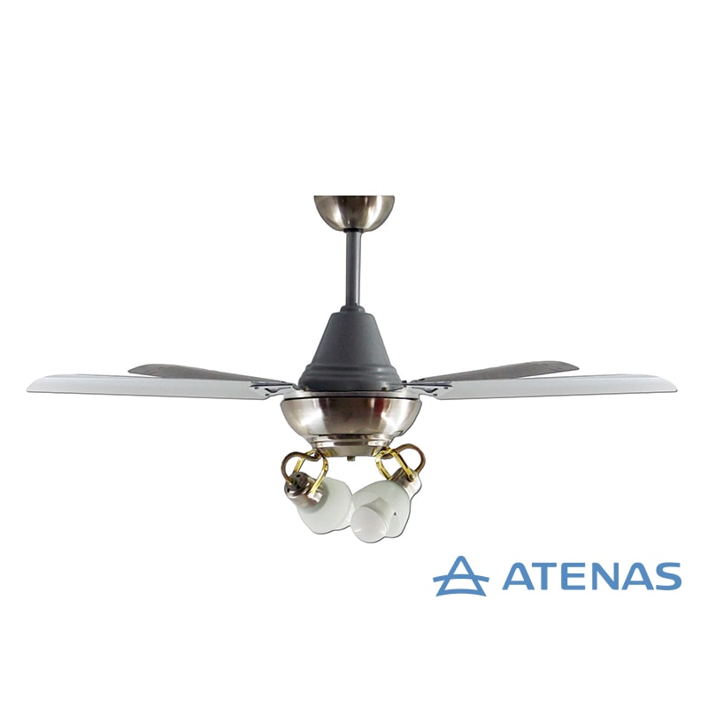- Motor: El ventilador de techo con 4 palas en acero está equipado con un motor Atenas de 85W, reconocido por su funcionamiento silencioso y eficiente. Los dos rodamientos blindados aseguran un rendimiento duradero.