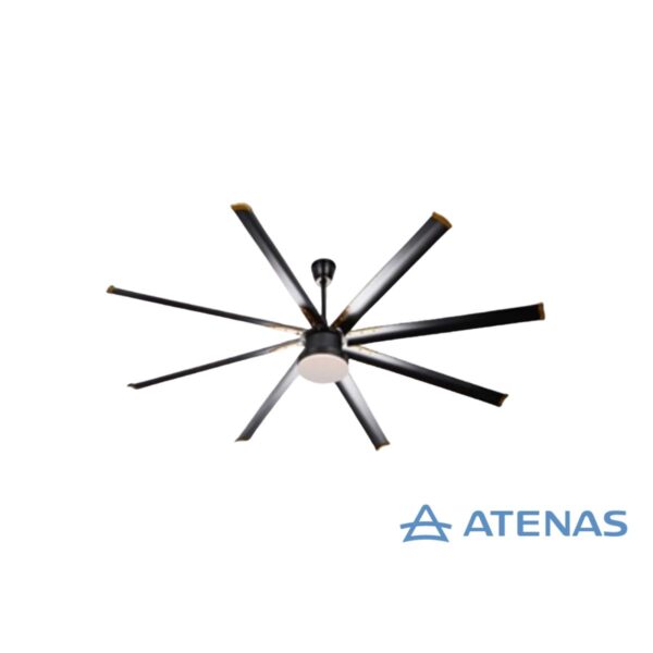 Ventilador de techo Industrial 254 CM Luz LED Motor 70w JY100-3600 está diseñado para climatizar espacios de gran tamaño como naves industriales, gimnasios o salones, ofreciendo un flujo de aire potente y una iluminación integrada. Con un diámetro de 254 cm, sus ocho aspas de aluminio distribuyen el aire de manera amplia y uniforme, mientras que el motor DC de 70 W asegura bajo consumo y funcionamiento silencioso.