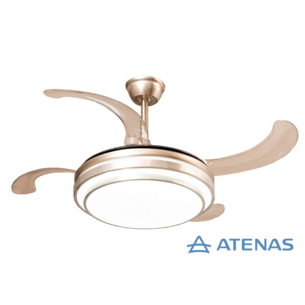 El sistema de apertura de aspas le da un toque único y funcional al ventilador, logrando mayor confort y optimizando el espacio cuando no está en uso. Es perfecto para quienes buscan un diseño innovador y eficiente para sus espacios.